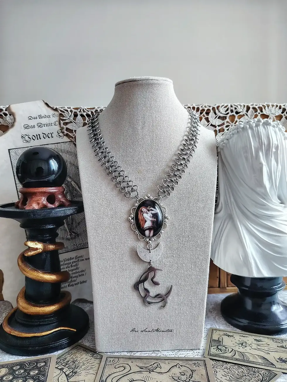Mi ispiro all'arte, alla letteratura, alle leggende, alle antiche culture e tradizioni, rielaborando il tutto all'interno di una mia personale visione che accomuna anche elementi fantasy e pennellate oscure, con una forte impronta romantica e retrò, in un rapporto che intrecci sempre e comunque la dimensione onirica a quella quotidiana, in un perfetto ed esaltante equilibrio.